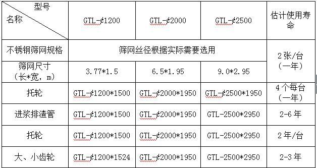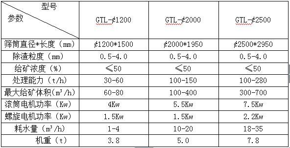 GTL系列料漿分級(jí)篩技術(shù)參數(shù)表: