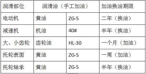 3.檢查各潤滑點(diǎn)油質(zhì)是否清潔,定期加油。潤滑制度見表: